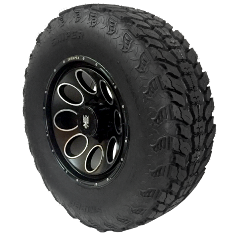 The aggressive side wall lugs aid in traction when traversing deep mud or snow. Snipers incorporate the patented Interco three-stage lug design concept which creates self-cleaning voids and suction release. Sniper LT tires utilize a directional tread pattern with tightly packed center tread blocks for improved on-road handling and noise dampening control. These tires are designed for long distance stability and durability, and are available in larger rim sizes and heights.